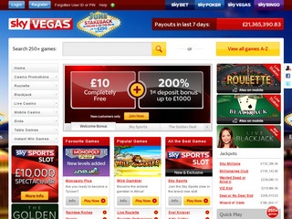 | Sky Vegas Casino | £1,000 | 200 | No | 25xB play | Amaya |